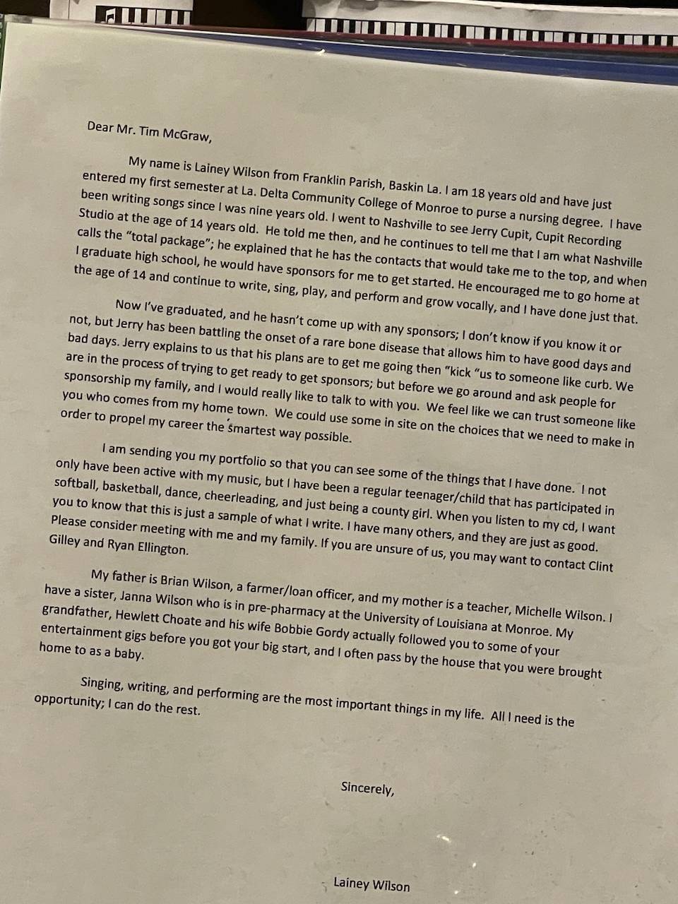 So Reader, are you someone who knows who's who in country music? I sure don't, and that became clear during a recent trip to Nashville. Pointing to a series of concert promo posters, I innocently asked a local colleague, "Who's Lainey Wilson?" (Lainey fans, forgive me.) For the handful of musician misanthropes like me out there, I now know that Lainey's one of the hot country stars today (as if the posters weren't a clue--duh). She's won a pack of awards (a 2024 Grammy for Best Country Album isn't too shabby) and ventured into acting in the TV hit Yellowstone (something else I haven't seen--okay, don't judge.📺) To make up for my gap in music education, I spent a half day at the Country Music Hall of Fame, which, among hundreds of other fascinating artifacts, displayed this letter Lainey wrote to Tim McGraw (okay, I kinda know who he is): This image might be too small to read, but here's the gist: 18-year-old Lainey asked for help. I've written a lot about asking for what you need (including here and here). There's also a chapter on it in my book. But here's what she did—strategies we all can learn from: